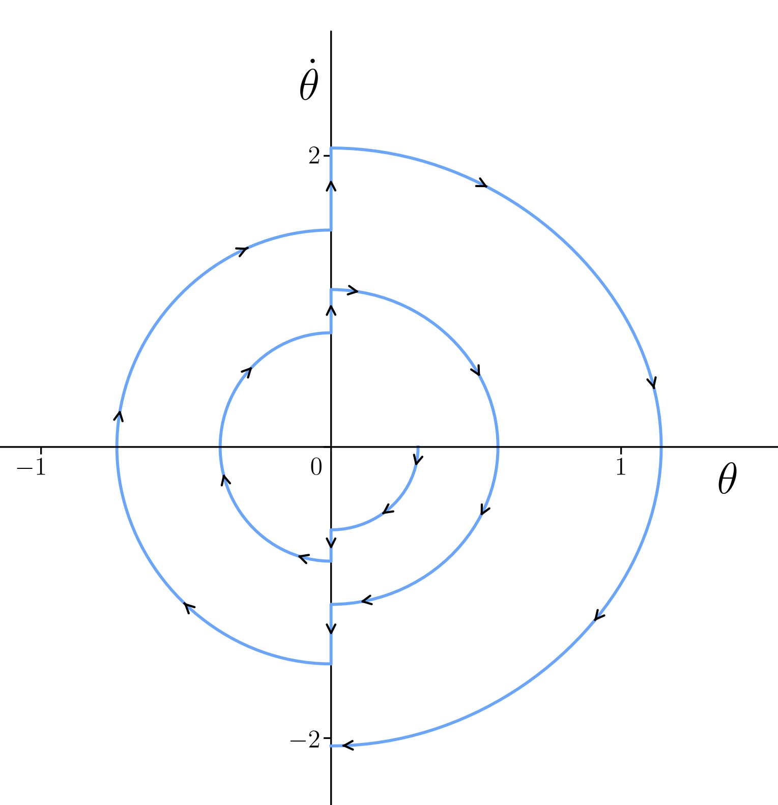 direction of motion in phase space, showing the system's evolution with